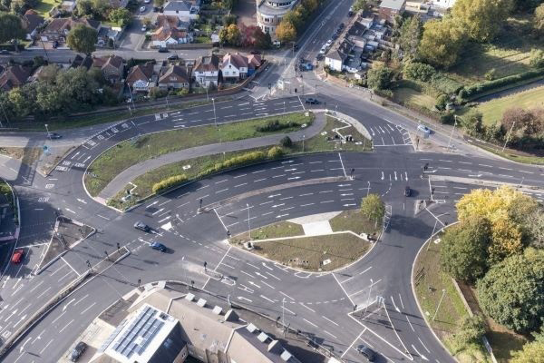 Aerial view of the new improvements at the A30 Crooked Billet roundabout