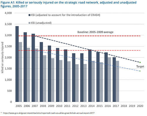 The adjusted figures show that Highways England has achieved a 32% reduction in in KSIs in 2017, compared to a 20% reduction under the unadjusted figures.