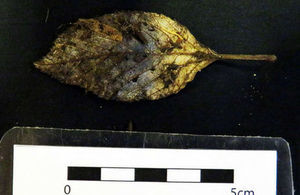The artefacts found included a 6,000-year-old elm tree leaf (pictured), as well as tools including worked flint and chert blades which either belonged to Mesolithic hunter-gatherers (pre-3800 BC) or Neolithic first farmers (post-3800 BC).