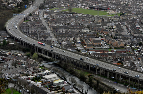 At Port Talbot the elevated M4 (pictured) is squeezed between steep hills and dense housing.