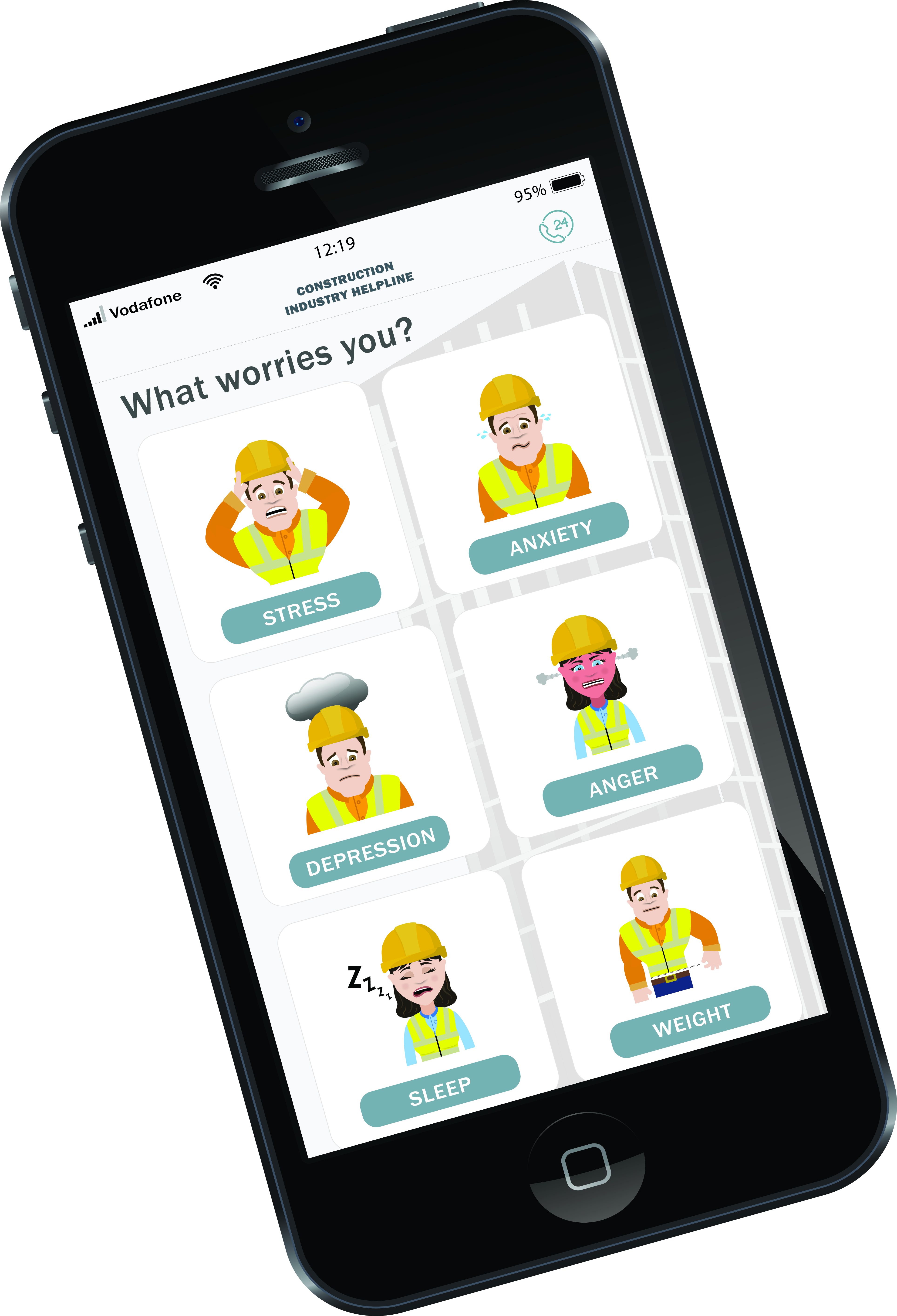 The new ‘Construction Industry Helpline' app provides vital information, advice and guidance on many wellbeing topics including stress, anxiety, depression, anger and suicidal thoughts, as well areas such as anger management, drug and alcohol dependency, debt management, legal advice, and emergency financial aid.