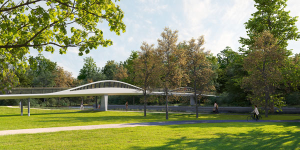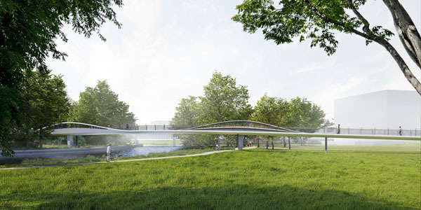 The firm said it designed the bridge to integrate with the local landscape, particularly the surrounding meadows, and to prioritise visual lightness.