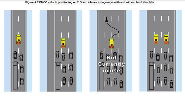 Released this year, Appendix A of the DMRB document GG 117 - The design and implementation of temporary traffic management and road works outlines the technical details behind the 'enhanced mobile carriageway closure (EMCC)'.