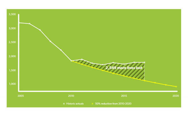 A new report has highlighted the 2,549 additional deaths that have occurred on Britain's roads in the last decade as the long-term trend of casualty reduction has stalled.