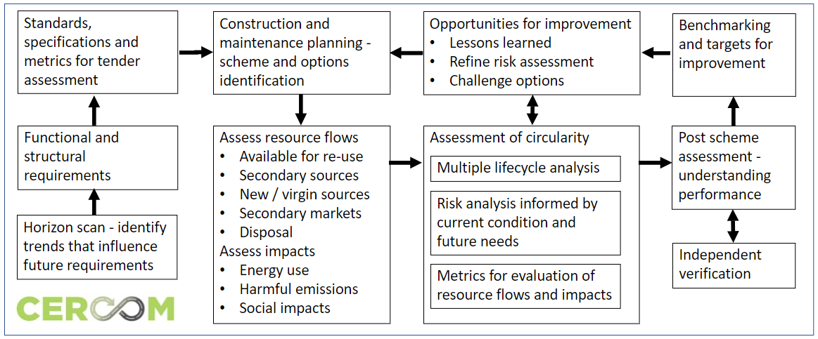 Figure 2 CERCOM Framework for Incorporating Circular Economy in Highway Construction and Maintenance