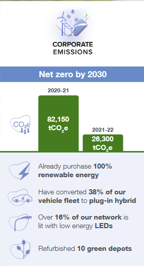 Under its 2021 net zero highways plan, the government-owned company pledged to reach net zero corporate emissions by 2030, including a cut of 12% compared to its 2020 emissions from a 'switch to LEDs'.