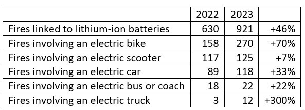New research has found that last year UK fire services attended almost three fires a day linked to lithium-ion batteries, which are now common in electric vehicles, bikes and scooters.