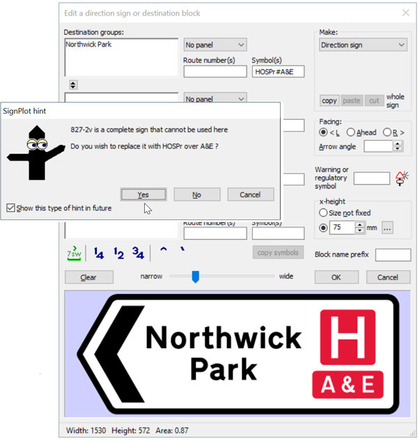 The latest version of SignPlot, therefore, has all the new signs needed for the forthcoming TSRGD amendment for Wales, not surprising in view of our having used it to assist the Welsh Government in creating the graphics for this statutory instrument.