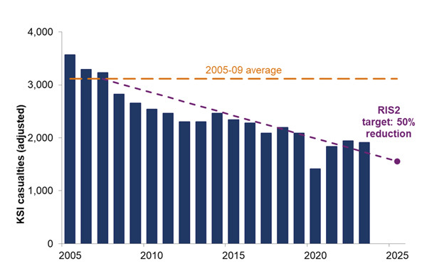 The government-owned company has a target to reduce the number of people killed or seriously injured (KSI) on the strategic road network (SRN) by 50% by the end of 2025, compared to a 2005-2009 average baseline.