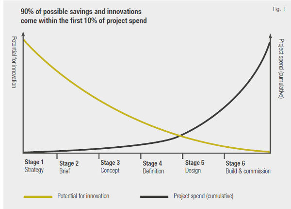 7. Spend more money earlier – many projects try and skimp on spending the necessary amount of money upfront to properly examine, scope and plan the scheme. By spending more money and time earlier it allows you to reduce the risks later on in the project while giving more room for innovation.