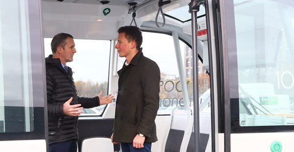 Mr Matheson (left) in a driverless pod at CAV Scotland 2019