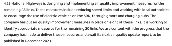 National Highways has a KPI requiring it to bring links with illegal levels of NO2 into compliance ‘in the shortest time possible' and the ORR is responsible for holding the company to account on this.
