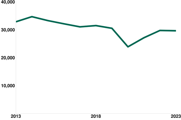 There were also 29,643 killed or seriously injured (KSI) casualties, which officials said showed little change compared to 2022 and 132,063 casualties of all severities, a fall of 3%.
