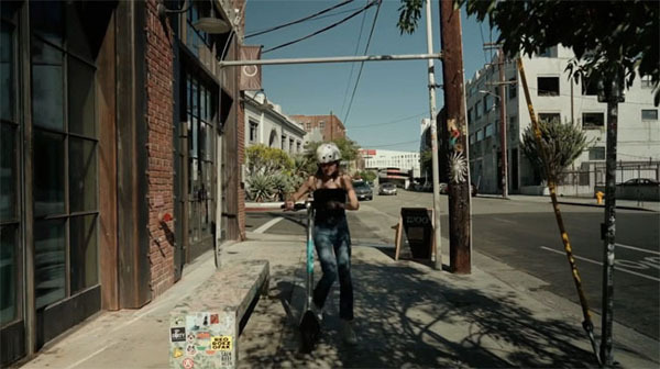 A rider dismounts after her scooter is brought to a halt