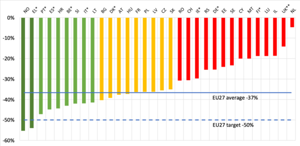 Greece was the only EU member state to reach the road death reduction target with a decrease of 54% over the decade to 2020. Norway, a non-EU country, saw a 55% fall in the number of road deaths.