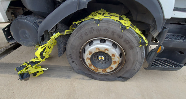The name stands for Barrier On Strong Spikes, and The BOSS comprises a robust mat with the eponymous strong spikes pointing outwards, which brings the vehicle to a controlled stop.