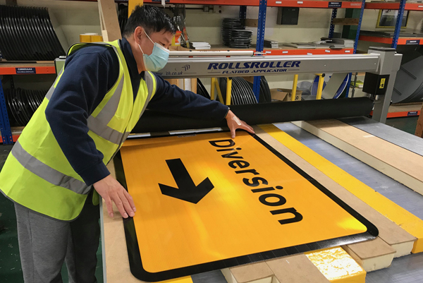 Military veterans working in RBLI's factory (above) which employs more than 100 people – 70% of whom are veterans, have a disability, or both - produced the examples for the exhibition alongside their work producing signage for roads throughout Britain, Network Rail and many other purposes.