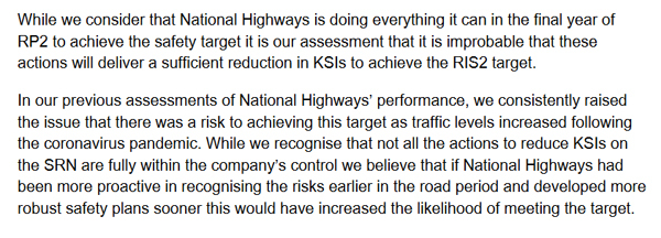 The ORR warned last December that National Highways was off track to meet its key target of a 50% cut in the number of people killed and seriously injured (KSI) on its network by the end of 2025 and said it must 'transparently' include additional interventions in a 'robust' plan by the end of March 2024.
