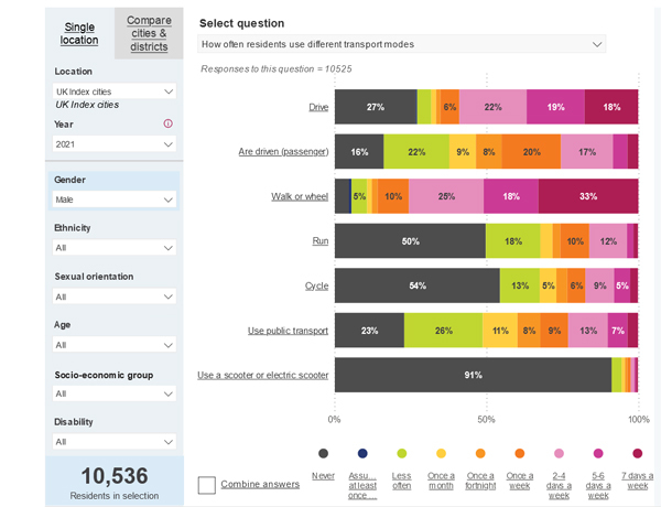 It said it has been capturing data since 2014, releasing findings every two years in its Walking and Cycling Index (formerly Bike Life) reports, which include an independent representative survey of adult residents, covering travel attitudes and behaviours.