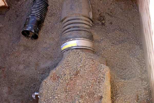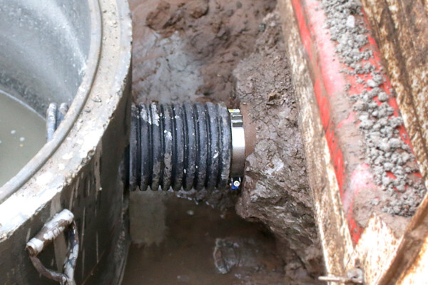 For example, in most cases, pipes had been encased in concrete, causing significant problems when new sections were required or the old pipes needed connecting into new manholes and catchpit chambers. Contractors had been breaking away the concrete by hand to expose the external surface of the pipes to connect a traditional coupling. (pictured below)