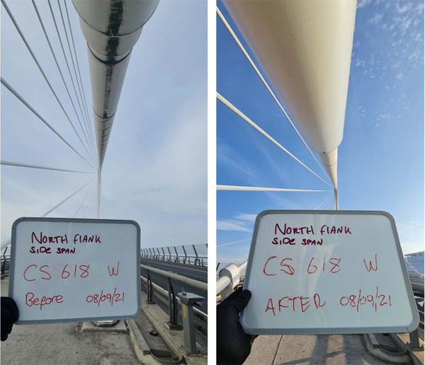 Chris Tracey, BEAR Scotland's South East Unit bridges manager, said: ‘Our rope access teams have also done a great job completing the cleaning of the cables on the Queensferry Crossing's north tower. This will allow us to measure what difference this makes to the formation of ice. As part of the project, a range of sensors and thermal cameras have been installed at the top of each tower.