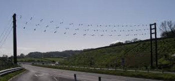 Pictured right: the most common bat gantry design in the UK – steel wires with plastic spheres at intervals that are intended to be acoustic guides for bats