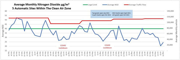 A press statement from the council attributed ‘significant improvements in air quality levels' to businesses and transport operators using council grants to upgrade their vehicles to prepare for the CAZ.