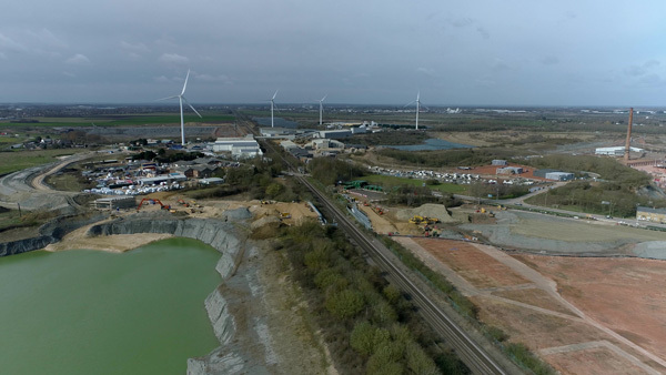 Jones Bros is testing limestone supplied by G Webb, which is being used to partially fill Star Pit (pictured above), a flooded former clay pit that borders the project. Samples of the stone are examined daily using a mobile lab by an accredited testing company, Celtest, to guarantee quality and safety before delivery.