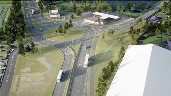The proposed improvements include extra lanes on the approaches to the junction and an extra lane around the whole roundabout (circulatory).
