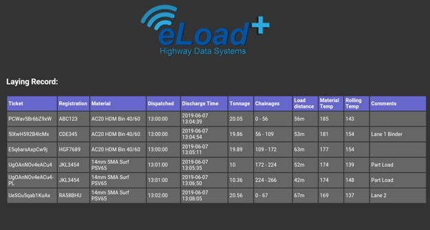 In order to meet the additional need, eLoad+ has pages where laying record information can be entered. Each gang using the eLoad+ system is given a calibrated temperature probe and appropriate usage training. When operatives have indicated that a load has been discharged, eLoad+ requests a material delivery temperature, material rolling temperature, as well as start and end chainages for each load of material