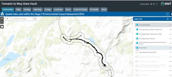 The virtual exhibition includes examples of new digital initiatives such as 'a story map and data vault' to provide information about the A9 Dualling schemes including the spatial data that is a core part of the design process.