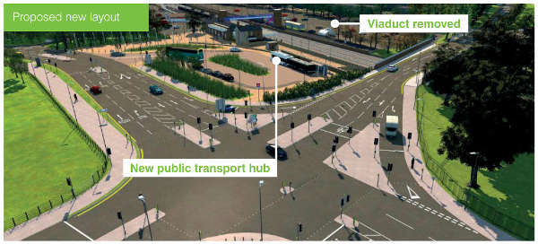 A new public transport hub will be created, with bus stops 'conveniently located for the railway station'.