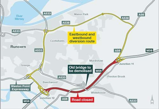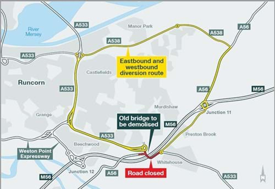 Access to and from the A56 local road will also be closed - again for safety reasons – at its junction with the A533 near the new bridge.