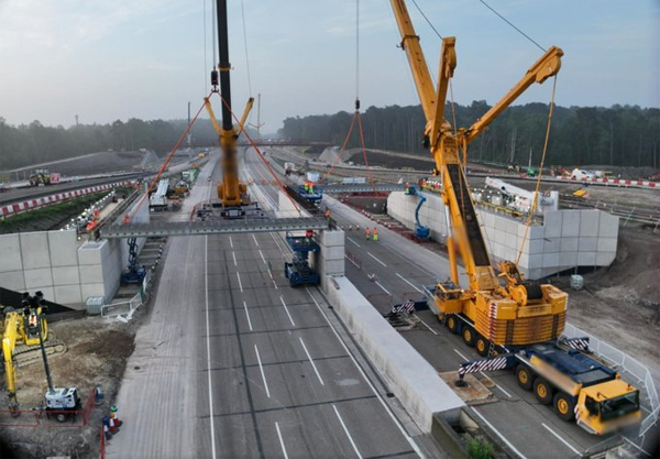 The M25 was closed between junctions 9 and 10 from 9pm on Friday 10 May until approximately 11pm on Sunday 12 May, to allow for the installation of 72 beams that will form part of a new bridge, as well as a new gantry, spanning the entire carriageway.