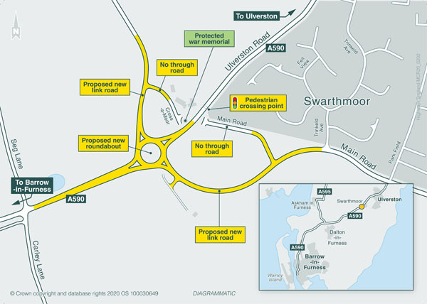 Highways England is building a new roundabout along the A590 at Cross-a-Moor, south of Ulverston, to replace the current staggered junction and support the creation of 1,063 houses being built in the area.