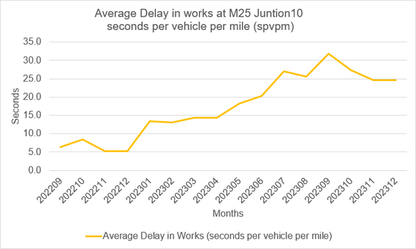 National Highways said the summer peak reflects the introduction of traffic management on the sensitive slip roads leading on and off Junction 10. It added that it expects this impact to be relieved in spring 2024 when the new lanes open.