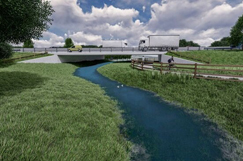 Picture: representation of the A47 passing over the River Tud