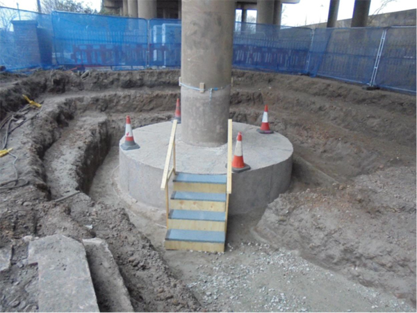 The work involved careful excavation of land around the base of the concrete columns, which had been damaged by water.
