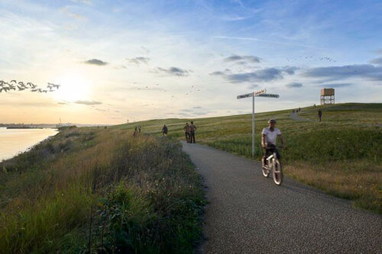Artist's impression of repaired Two Forts Way foot and cycle path and Tilbury Fields park