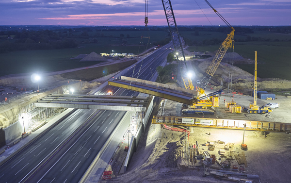 Civil engineering specialist GRAHAM has reached what it called a major milestone on the new M11 Junction 7a project with the installation of structural steel beams to create a new overbridge.