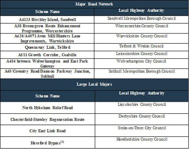 The sub-national transport body (STB) for the Midlands has submitted 11 priority road improvement schemes for a share of £3.5bn government cash.