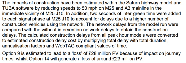 This was despite the report assessing that construction 'would involve a complex programme of traffic management on the live highways, including: reduced speed limits, narrow lanes, lane closures, overnight closures of the road with diversions'.