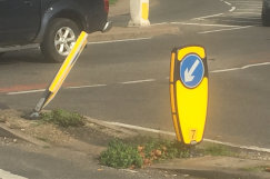 One particular difficulty can be when the vehicle straddles the island so that the sump of the engine acts as a shearing surface and consequently the bollard may become detached. This can be exacerbated as the front of the car typically compresses downwards under hard braking.