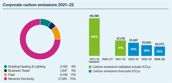 For 2021-22, the company reported 37,178 tonnes of carbon dioxide equivalent (CO2e), a cut of 59% against the baseline, with around 90% of emissions coming from grid electricity.