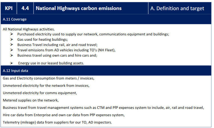 As Highways has reported, National Highways has said its electricity comes from a '100% renewable tariff. It is not permitted to discount emissions from electricity for the purpose of corporate reporting or its KPI and the ORR previously obtained an assurance that it was not doing this.